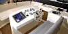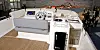 En annen fordel med det utradisjonelle designet er størrelsen på flybridgen. Den dekker nesten hele båtens lengde, og kan blant annet skilte med et boblebad. Det finnes også en dedikert champagne-heis fra pantryet og opp på flybridgen.