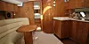 Det er en fryd å komme under dekk. Kirsebærtre med tokomponent finish dominerer og gir et tradisjonelt inntrykk. Et solid vindu i taket gjør salongen lys og fin, men plassen virker likevel noe knapp. Også stuveplass er det mindre av enn hos konkurrenten, men trangt er det på ingen måte.