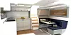 Mellom masterkabinen og "stua" finner vi også en lugar for to, også denne med eget bad. Helt bak, bak motorrommet, er det også funnet plass til en dobbeltseng og et eget bad.