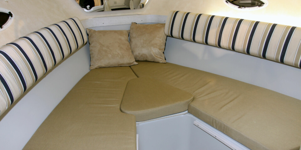 Også ombord i båten er 80 DC en forsmak på hva vi kan forvente av Yamarin i tiden framover. Blåfargen på interiøret som vi kjenner fra andre modeller, er nå byttet ut med lyse farger i grått og beige.