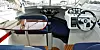 Fra førerplassen styrbord har du god sikt i alle retninger utenom rett akterover, hvor toalettet lager en blindsone. Instrumentene sitter litt langt unna, men det gir plass til et brettet kartblad eller to, med mindre du velger å sette en plotter der i stedet. Under konsollen sitter det forøvrig et klesskap.