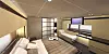 Mest original er uansett baderomsløsningen til marsterkabinen, som er plassert lengst frem i baugpartiet og som naturlig nok blir V-formet. I henhold til tegningene blir designen under dekk både lys og åpen, og får et særegent preg ved hjelp av Østen-insirerte baderomsdører.