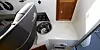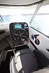 I styrehytta er det to konturformede stoler og en enkel sittebenk inntil bakveggen på babord side. Kanskje ikke helt tilstrekkelig med hele familien om bord, men godkjent.