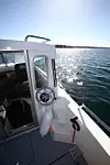 I vårt tilfelle er det altså hevet fordekk, solide sluk i dørken og lavt akterspeil, som kompenserer for gattene. Men skal du inn med baugen først er det ikke alltid like enkelt å ferdes forut. Selve akterdekket på sin side egner seg ypperlig til alt fra fiske, dykking til ren lasting. Og selve kronjuvelen her er utestyringen, som du fort blir avhengig av.