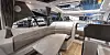 Inne er det plassert en stor U-formet salong på babord side, mens babord side er okkupert av en wetbar. Stilen er holdt ren og relativt enkel med lyst treverk og gråsjatteringer. Det hele gir en følelse av stilrenhet, men det er ingen voldsom luksus-følelse om bord. Det det imidlertid er mye av, er lys og plass. De store vinduene i skrogsidene og det høye overbygget gjør at båten føles større enn den egentlig er, og den virker mer åpen enn mange av konkurrentene.