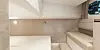 Under dekk blir du møtt av en stor salong med senkbart bord rett forut. På babord side finner du et relativt lite pantry med koketopp, vask og kjøleskap. Dette er en plassering som gjør matlagingen mindre sosial enn i båter hvor dette befinner seg oppe. Det frigjør imidlertid plass til flere rundt bordet på hoveddekket. Området under dekk blir lyst opp gjennom et stort glasspanel i himlingen - en løsning som gir en god romfølelse.