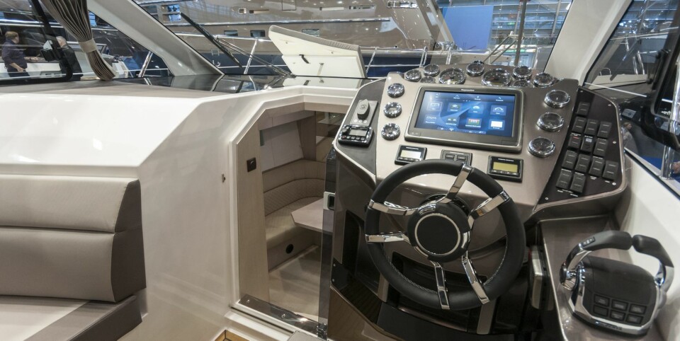 Førerplassen virker å ha relativt god ergonomi, og det inntrykket vi fikk mens båten lå på land tydet også på at man vil ha god oversikt i alle retninger herfra. Noen vil nok savne en ekstra sitteplass eller to i fartsretningen. Her er det kun to personer som kan ha nevneverdig oversikt mens båten er i fart.