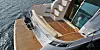 Når man åpner den massive døren akter i Galeon 390 Fly, utgjør akterdekket en fin forlengelse av salongen. En solid aktersofa forsterker middelhavsinntrykket, så gjør også den fine teakdørken og en lekker innstøpt leider som leder til flybridgen.