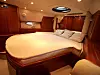 Kapteinslugaren holder tilsvarende høy standard, og har en rommelig dobbeltkøye, en minisofa på styrbord og tilstrekkelig med hengeskap på babord. Som i resten av båten er teakfinérdørken dekket av et kantsydd teppe (alternativ).