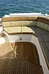 På den annen side må du se langt etter dieselmotorer i motorrommet. Her finner vi i stedet en dobbel V8 bensin-installasjon fra Mercruiser, en 8,2-liters bigblock på 2 x 380 hk (T-ECT 350 MAG) med et par Bravo III-drev. Parhestene kler båten ypperlig både når det gjelder lyd- og kjøreopplevelse.