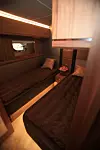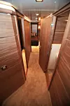 Midtskips finner vi en gigantisk eierkabin i hele båtens bredde - selvfølgelig med tilhørende bad. Herfra er det også en egen inngang til maskinrommet. Vår mann fra verftet kan forsikre oss om at døren er helt lydtett, og når vi ser på tykkelsen tviler vi ikke på det. I tillegg til eierkabinen er det to gjestekabiner om bord i "vår" båt.