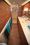 Når vi tar trappen ned og havner under dekk er det første som slår oss den gode plassen. Båten er riktignok 78 fot lang, men det virker likevel stort i forhold til andre, og mer konvensjonelle, båter på denne størrelsen. Det er ingen tvil om at nederlenderne har utnyttet skrogets kapasitet godt.