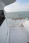 Vinterstid er ikke dette en attraktiv plass å være om bord, men du får i alle fall en fantastisk god luftetur. Rent funksjonelt er det lite å klage på, instrumenteringen er den samme - men alle bevegelser i båten blir kraftig forsterket så pass høyt oppe.