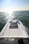 Men dette har igjen svært mye med hvordan du bruker throttelen. For kjørt med behagelige 20 til 25 knop er dette nemlig en høyst forutsigbar og behagelig opplevelse, selv om det er litt rufsete utpå. Dette henger også sammen med at V-bunnen er trukket nokså langt forut for å få plass tl Air Step-en, som gjør den godt optimalisert for marsjfart.