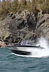 Her er det ingen planingsterskel å snakke om, og et lavt forbruk på mellom 0,4 og 0,5 liter per nautisk mil fra 12-23 knop forteller sin historie om det. Støynivået er også på den moderate siden, og dermed føles båten mer komfortabel enn størrelsen skulle tilsi. Detaljene og linjeføringen om bord ser ikke ut som kandidater til Nordisk råds designpris, men den nevnte rasingen i bølgene, avslører at det tydeligvis ikke er noe i veien med kvaliteten.