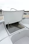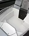 Foran konsollen er det en liten nedsenket dekksplass og en liten benk med stuverom og stigtrinn helt forut.