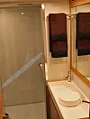 Tv og stereoanlegg, sminkespeil i hollywood-stil for mor og lenestol for far, og selvfølgelig eget bad til de to største lugarene.