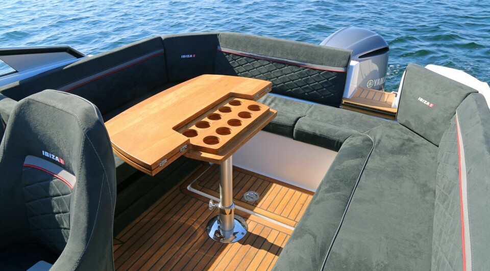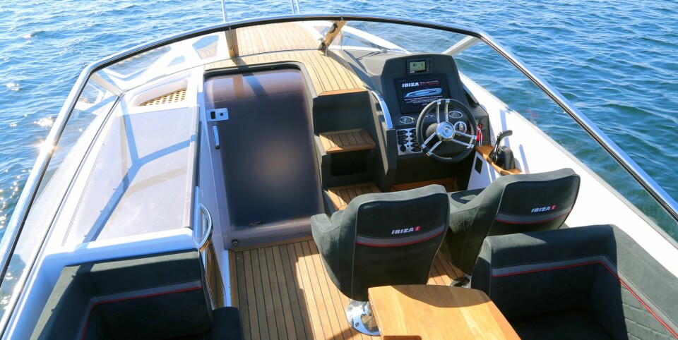 Selv om man har ofret det ene copilotsetet for å få plass til bysse, mangler det ikke på sitteplasser i cockpit. Vi nordmenn liker å kjøre lange turer og være om bord i båten. Fine cockpitløsninger har vært en av suksessfaktorene for Ibiza opp gjennom årene. Ingen grunn til å bli skuffet over Ibiza 811 Touring heller, her sittet fem personer komfortabelt rundt det store bordet. Det står på en solid søyle, er i likhet med mye annet om bord standardutstyr og kan felles ned som base for en hel solseng akter. Ekstrautstyrslisten er for øvrig behagelig kort og begrenser seg til baugpropell, elektrisk ankervinsj, trimplan og varmeviftelokk til koketoppen.