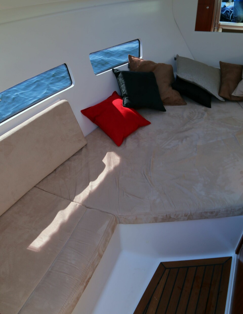 I likhet med andre moderne båter har Ibiza 811 Touring store skrogvinduer og lysvinduer i dekket. Det gir trivelige omgivelser på dagtid, men slipper også lyse sommernetter inn i kabinen. Om du ikke tyr til en sovemaske, kan stikkøya under cockpitgulvet være et alternativ. Den er i utgangspunktet dimensjonert for to barn, men kan også fungere bra for en voksen person siden lengden er god. LED lese- og kabinlamper hører med til standardutstyret.