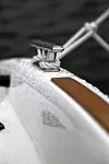 Farkosten er ellers pepret med små finesser som gjør båtlivet litt enklere. Her finner vi enkle fenderholdere i form av strikk ved akterbenken, små stuverom til småting i baugen, plass til redningsvester og annet i konsollen. Samtidig er det relativt enkelt å bevege seg om bord. En bred passasje forut gjør det enkelt å komme seg i land og det er lite skarpe kanter å hekte seg fast i.