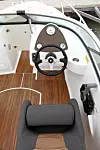 Da lar vi skroget ligge, og vi går over til innredningen. Bowrider-tankegangen er en idé mange båtbyggere har tatt til seg med ulike vinklinger. Her er det løst med fokus på trygghet og komfort, som det heter i reklamespråk. I praksis vil det her si høye fribord og ditto vindskjerm, samt en relativt dyp cockpit. Dette gjør at du i kan plassere hele familien bak vindskjermen og kjøre et stykke uten at det blir for mange blå lepper på akterbenken.