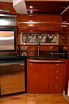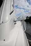 Den modellen vi var med om bord i, hadde Zeus-framdriftssystemet, det amerikanske svaret på Volvo Penta IPS. Det gir svært effektiv svingradius, og manøvreringen virker enkel.