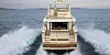 Badeplattformen, også den av typen «veldig stor», kan senkes så du kan kjøre vannscooter eller småbåt oppå. Det er også kran på flybridgen til å heise vannscooteren ombord etter endt tur.