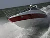 Da vi legger den opp mot vinden og mater 2 x 270 hk bensin under akterdekket, får vi raskere respons enn forventet - med påfølgende magaplask i neste bølgedal. Dette avslører imidlertid fort et svært kompakt og stille skrog, fritt for ulyder, selv om stereoen ble et lokk fattigere. Skrogets noe spesielle utforming gir også en liten planingsterskel og lite behov for trimming av drev.