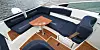 Babord er det plassert en hjørnesofa som tilbyr trivelig sittekomfort for opptil fem voksne personer, og copilot-setet er en fortsettelse av denne benken. Her fremme sitter man også fint, og en vipp med ryggstøtten gir ekstra stor sittegruppe rundt det lille drinkbordet, eller en langstrakt solseng for de smaleste. Også Nordkapp har et teakbelagt trinn akter i cockpit som gjør badelivet enklere for noen, og fortøyningsprosedyren enklere for andre. Å tråkke i sofaputer på vei inn eller ut av cockpit har åpenbart gått av moten.