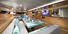 Den store plattformen mellom skrogene fungerer som en sosial samlingsplass både ute og inne. Flybridgeområdet måler 55 m² og inneholder en stor sofagruppe, solsenger og styreposisjon med navigasjonsinstrumenter og seilstyring. Cockpitarealet under flybridgen er hele 103 m². Her er det også sofa med spiseplass, tendergarasje og lagring for vannleker og dykkerutstyr.