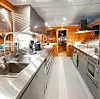 Innvendig er det en rommelig salong og spisestue for 8 personer. Som i mange andre luksusyachter ligger finnes en egen avdeling med en profesjonelt utstyrt bysse og den fremre delen av denne seksjonen ligger styrehuset med plass til to. Denne avdelingen er utformet slik at det er enkel adgang fra mannskapsseksjonen. De færreste utleiegjester har kompetanse til å styre en slik skute selv, og har sikkert også råd til å la en dyktig kokk stå for matlagingen.