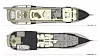 Om bord i den voldsomme yachten er det plass til 10 gjester i tillegg til de to i eierkabinen. Disse blir forvist under dekk, og til tross for at vi ikke får se annet enn plantegningene, er det rimelig å anta at heller ikke disse lider noen voldsom nød. Gjestekabinene er plassert midtskips, og er alle utstyrt med hvert sitt bad. Også her er det nok mulig å gjøre de endringene du skulle ønske. Hva med treningsrom? Eller kanskje et bibliotek er mer din stil? Sannsynligvis er det mulig å ordne - bare du betaler nok.
