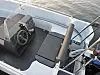 Pioner Vikings konsoll er utstyrt med instrumenter som trimindikator og turtallsmåler, noe som er nyttig å ha. Båten har ikke noen rekke rundt vindskjermen. Det er et savn når langbente båtførere skal reise seg fra den lave førerbenken.