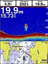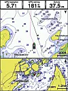 På tross av de begrensningene som ligger i en 5-tommers skjerm fungerer også avlesningen bra når du viser kart og/eller ekkolodd på en splittet skjerm.