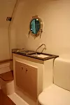 Under dekk finner man minikabinen - som har en maksimal takhøyde på 170 centimeter. Her finnes det en sofa som kan gjøres om til dobbeltseng når kvelden siger på, og i kombinasjon med toalett, kokeplate og kjøleskap gjør den at det er mulig å bruke båten på korte overnattingsturer.