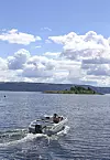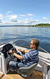 I beste Finnmaster-stil takler 55 BR også hardkjør i bølger bra, men det er selvsagt ikke slik man kjører båten under normale forhold og med familien om bord. For familie- eller venneturene setter du spesielt pris på at båten så å si ikke har noen planingsterskel. Det gjør det enkelt å finne et komfortabelt fartsområde selv om det er vind og bølger. Fra drøye 10 knop glir båten pent av gårde med moderat støynivå og forbruk.