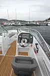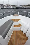I motsatt side dominerer holdere for fire fendere. Opp mot fordekket er det gode og passe store trinn. Dette gjør det enkelt å entre båten forfra og utvilsomt noe man setter pris på når man skal inn og ut av båten ute på svaberget. Et lite baugnebb er ensbetydende med enda enklere entring fra svaberget og en bra pulpit er på plass.