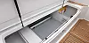 Totalt har båten mange stuverom: I benken forut, i konsollene, under akterbenken og ved badeplattformene. En fast tank på 100 liter er også på plass og med motorens moderate forbruk betyr det sjeldnere besøk innom marinaene. Med et typisk sommerforbruk ved blandet kjøring på 10-15 liter per time, kan du kjøre 7-8 timer før du må innom for å tanke.