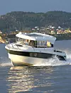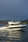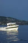 Dieselen med 220 hestekrefter føles sterk i den 2,6 tonn tunge båten og dytter den uanstrengt opp i plan. Vi marsjer fint i rundt 20 knop og klarer 31-32 knop når vi legger godviljen til.