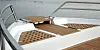 Hele akterdekket beskyttes ved at flybridgen er trukket akterover og gir fast tak. Med kalesjen på plass får man et tørt og stort oppholdsrom med en L-formet sofa i babord side. Kombinert med bord og løse stoler byr båten på en stor sittegruppe her ute.