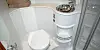 Båten har ett stort toalettrom istedenfor to mindre, men her har man alt man kan ønske. Stor dusjnisje med kvalitetsarmatur, flott takhøyde og like god komfort som man normalt har i dusjen hjemme. Rundt det elektriske toalettet er det også godt med plass, og totalt sett gir vi baderommet i denne båten topp karakter.