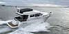 I siktlinjen rett foran skipperen er det en stor kartskjerm. Motorkontrollen sitter fint plassert og til venstre for rattet er bryteren til baugpropellen plassert. I praksis betyr det at man kan bruke baugpropellen med venstre hånd og motorkontrollen med høyre. Instrumentbordet og feltene under vinduene er i refleksfri, mørk grå farge, og det er kraftige defrosterdyser under frontvinduene.