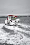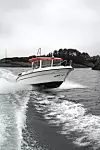 Egenskapene i større bølger fikk vi ikke testet på vår testtur, men båten går kontant og behaglig over krappe hekksjøer og oppleves som lettkjørt og trygg.