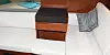Det er typisk å plassere enten en solseng eller en liten sofa vis-à-vis førerplass. I Leader 40 finner du begge deler. Resten av cockpit er veldig tradisjonell, med en stor u-sofa og pantry, og solseng helt akter ut mot den store hev/senk-badeplattformen med integrert landgang.