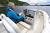 La meg forklare: Jeg har kjørt Boston Whaler-modeller før. Det er riktig nok blitt noen år siden, men det jeg husker best er den bunnsolide følelsen av tyngde, kvalitet og det vi kaller et “stumt” skrog. Boston Whaler skumfyller hulrommet mellom ytterskrog og innredning. Både for sikkerheten og fordi du får en kjøreopplevelse uten ulyd og vibrasjoner selv om du dundrer inn i bølge etter bølge.