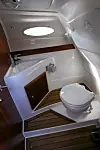 Hydraulikk løfter opp aktersofaen og en del av dørken, og dermed åpenbarer den ekstra køyeplassen seg. Uvanlig, ja vel, men neppe noen dårligere løsning enn å krype inn i en "konvolutt" under cockpitdørken.