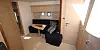 Det er naturlig nok mest volum og plass under dekk i 48-foteren, men 44-foteren ligger ikke langt etter. I Windy 44 er det en L-formet sofa i styrbord side foran inngangen til toalettrommet. Rett over - på skottet - er den naturlige plassen for flatskjerm-TV-en.