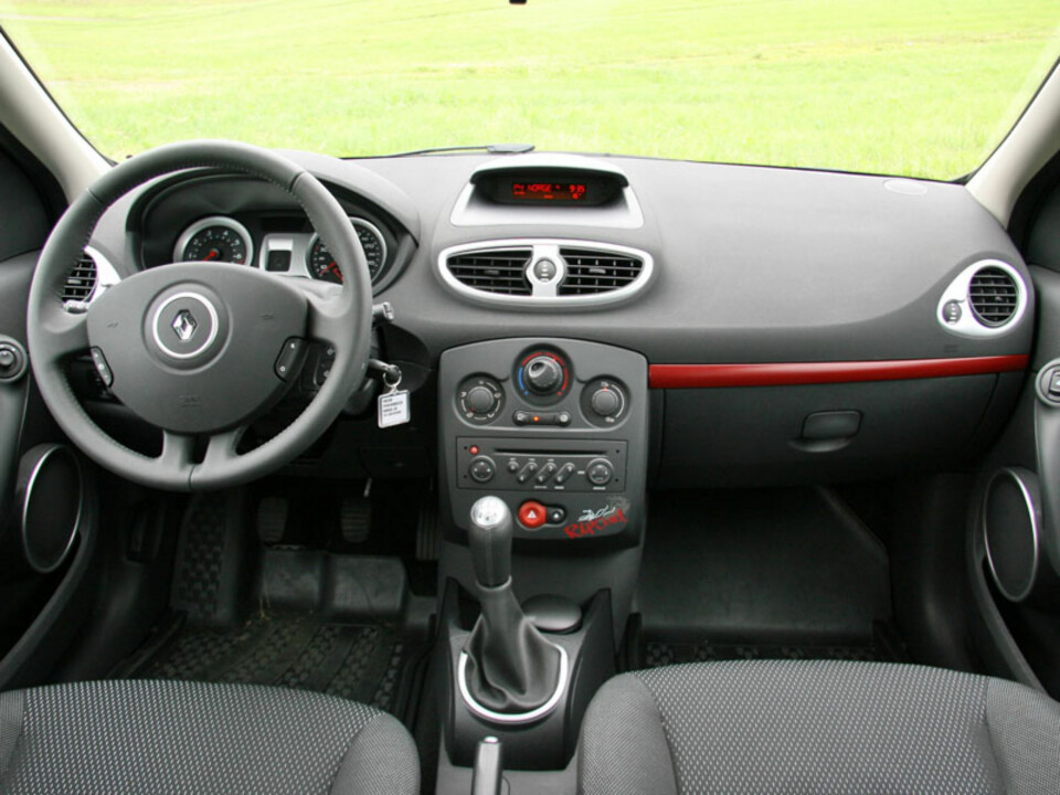 Også innvendig er Clio et greit skue. Renault har som kjent et ganske annerledes designmønster enn sine tyske konkurrenter, uten at dette er negativt. Rattet ser bra ut, er godt å holde, og harmoniserer godt med resten av dashbordet. Vår bil hadde utstyrspakken Rip Curl. Denne pakken inneholder en litt grommere stereo og litt annet snacks, men også noen rett og slett ufyselige vinrøde lister på dashbordet. Lyseblå bil kombinert med vinrøde lister skurrer i ørene allerede før man har satt seg inn i bilen.