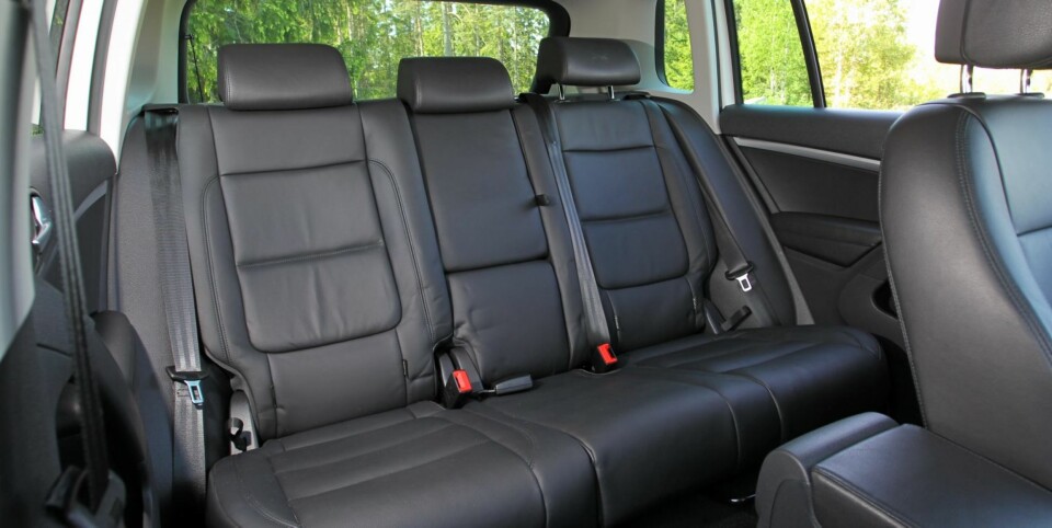 Beinplassen i baksetet er god på alle tre bilene, men glasstaket i Peugeot 4008 gjør at takhøyden blir knapp. VW Tiguan har et skyvbart baksete som lar deg variere forhold mellom benplass og bagasjeplass, og plassforholdene er faktisk såpass bra at du har en viss praktisk nytte av det.