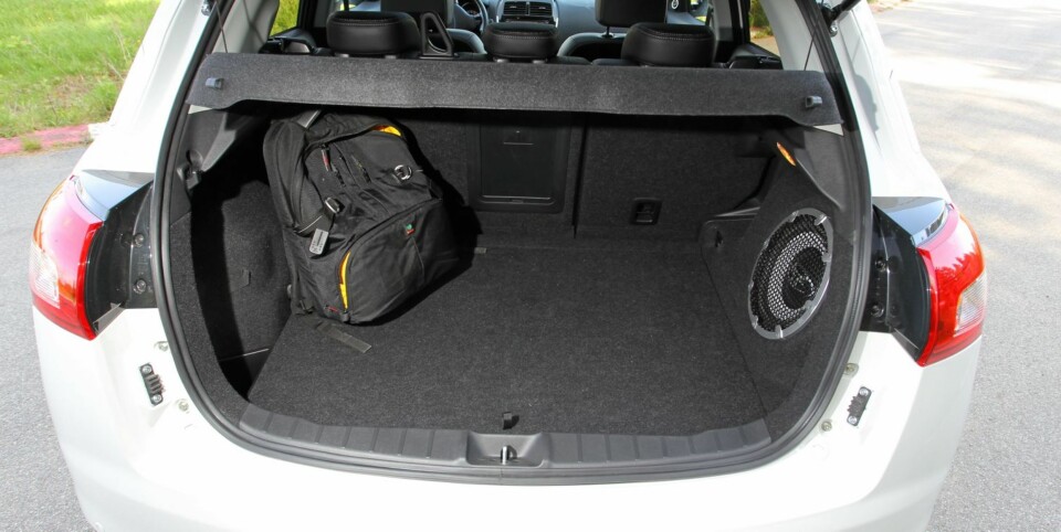 Peugeot henger med i bredden, men er kortere enn de to andre. Nødreservehjul er plasstyv og bidrar til å gi mindre takhøyde i bagasjerommet både med og uten hattehylle. VDA-målet sier 440 liter.